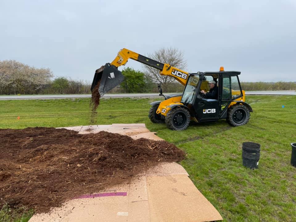 Joe Heyen, director of engineering and operations at MJM Electric Cooperative, works to install mulch at the MJM Community Pollinator Garden in Carlinville, Ill. Co-op employees have worked with local volunteers on the new garden to support populations of local pollinating insects and animals, such as hummingbirds, bees and butterflies.