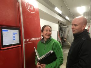 Mary Miller on a business inspection at a dairy that installed automated milkers for dairy cows.