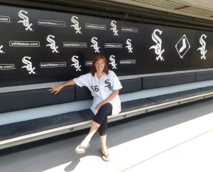 Julie Serletic in the dugout at Guaranteed Rate Field, home of the Chicago White Sox.