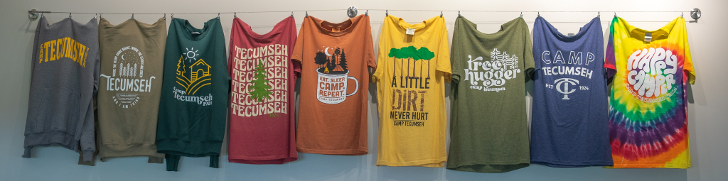 Camp Tecumseh shirts that are available at the store located in Kamden Dining Hall.