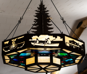 One of the custom chandeliers in Kampen Dining Hall in Camp Tecumseh’s River Village. The camp received Power Moves® rebates from Carroll White REMC for energy efficiency upgrades to the new facility, including LED lighting.