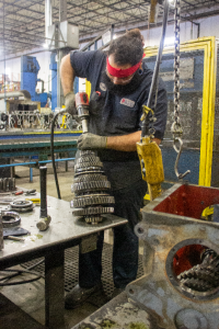 The company uses air compressors in multiple stages of the rebuilding process, from stripping down and cleaning components to inspection, rebuilding, and testing the remanufactured transmissions, differentials, and steering gears and pumps. Mascot had used one of the old air compressors as a primary, with the other acting as a backup. Yet small repairs quickly gave way to larger ones.  In the second half of 2017, Mascot spent more than $10,000 on air compressor repairs. At one point it took seven weeks for Mascot to get a replacement cooling fan from Europe. Brown knew it was time for a replacement.